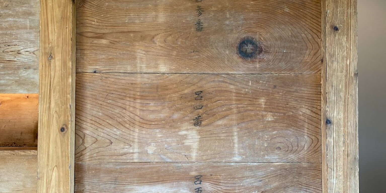 古い穀増「コクマス」(米の貯蔵庫)の板壁を再利用しました