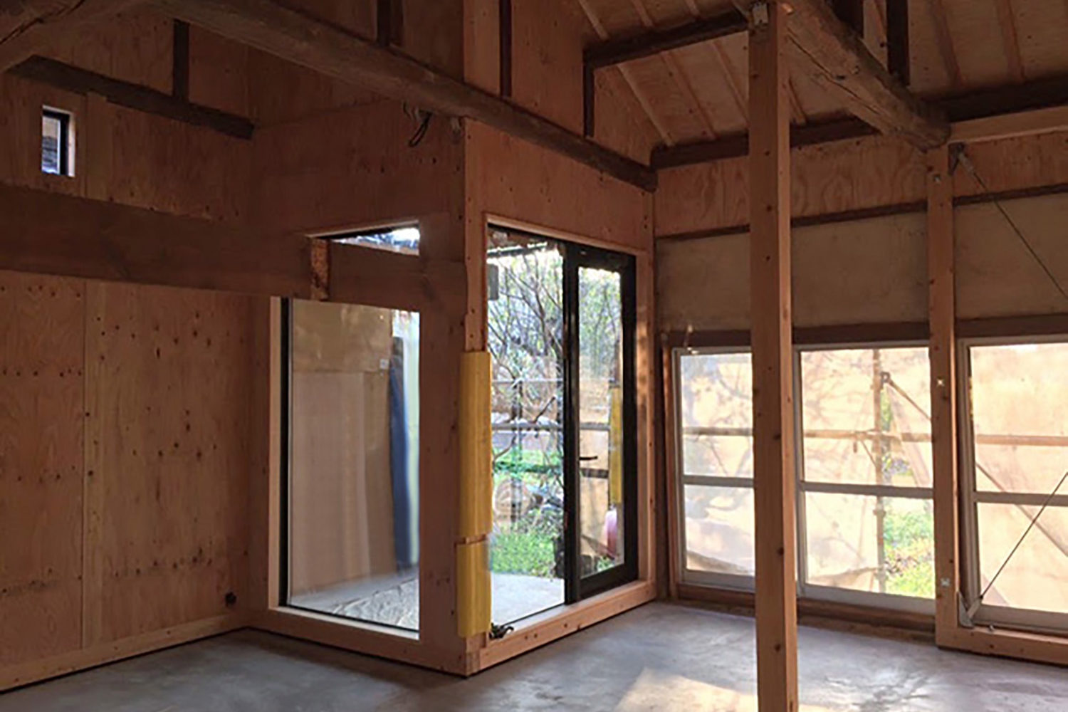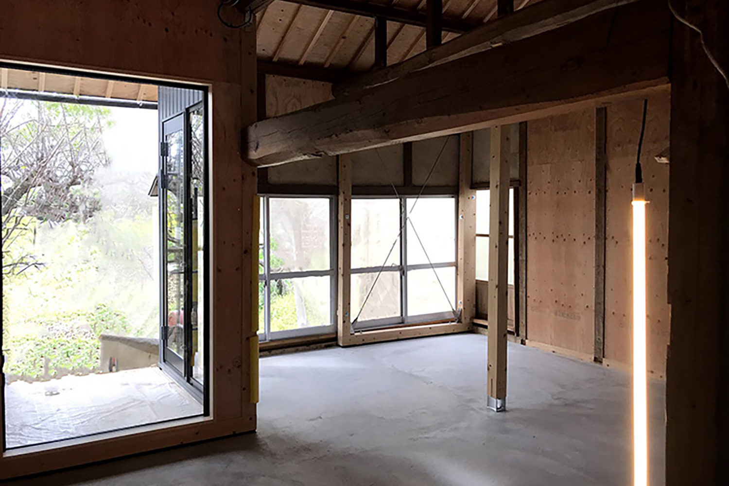 そのため、柱と土台を入れ基礎を土間打ちしました。耐震補強のみであえて仕上げをせず仕今後住む方にしていただくよう、必要な水回りの設備のみ入れたハーフリノベーション物件です。