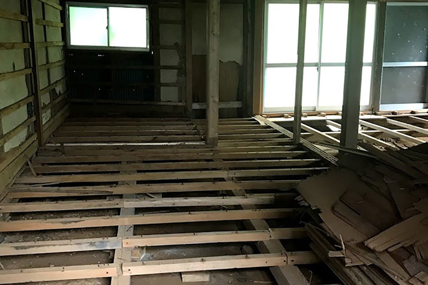 土台も柱も腐り、斜めに傾き屋根も落ちていた状態の空き家でした。