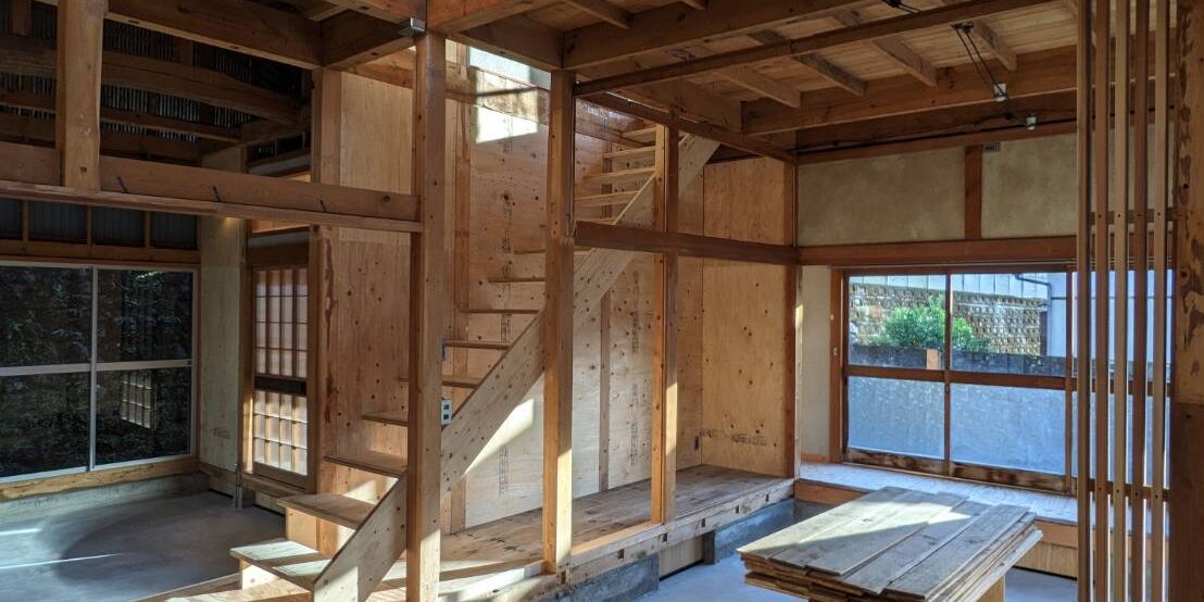 湖畔を見渡す絶景ロケーションに佇む古民家の改修工事を行いました。建物は風情をそのままに、現代のニーズに合わせた工夫を加えています。特に、半外仕様の土間スペースを新設し、自転車やバイクのメンテナンス、さらにはアトリエとしてもご利用いただける多目的な空間をつくりました。