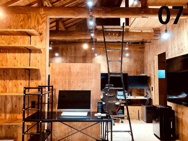 アジトなオフィス RENOVATIONBy YOHAKU DESIGN2020-12-25趣味と仕事の両立できる空間づくりをと、住宅をオフィスに改装 梁より上の天井部分にロフトを新設し、趣味室をつくりました まるで秘密基地のようなアジトのようなオフィスです